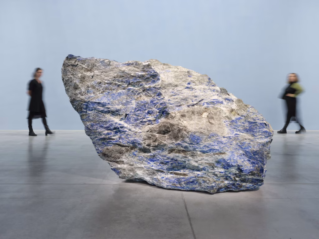 In Blue Days Dust (II) (2025) vult intens ultramarijn de hele ruimte. In het midden ligt een blok lapis lazuli van bijna twee ton; de muren zijn beschilderd met pigment afkomstig uit dezelfde steen. Wat eeuwenlang het kostbaarste blauw was voor renaissanceschilders vormt hier, letterlijk en figuurlijk, grondstof voor een zintuiglijke meditatie over waarde.